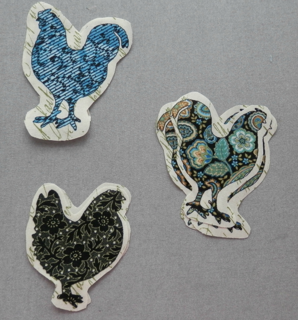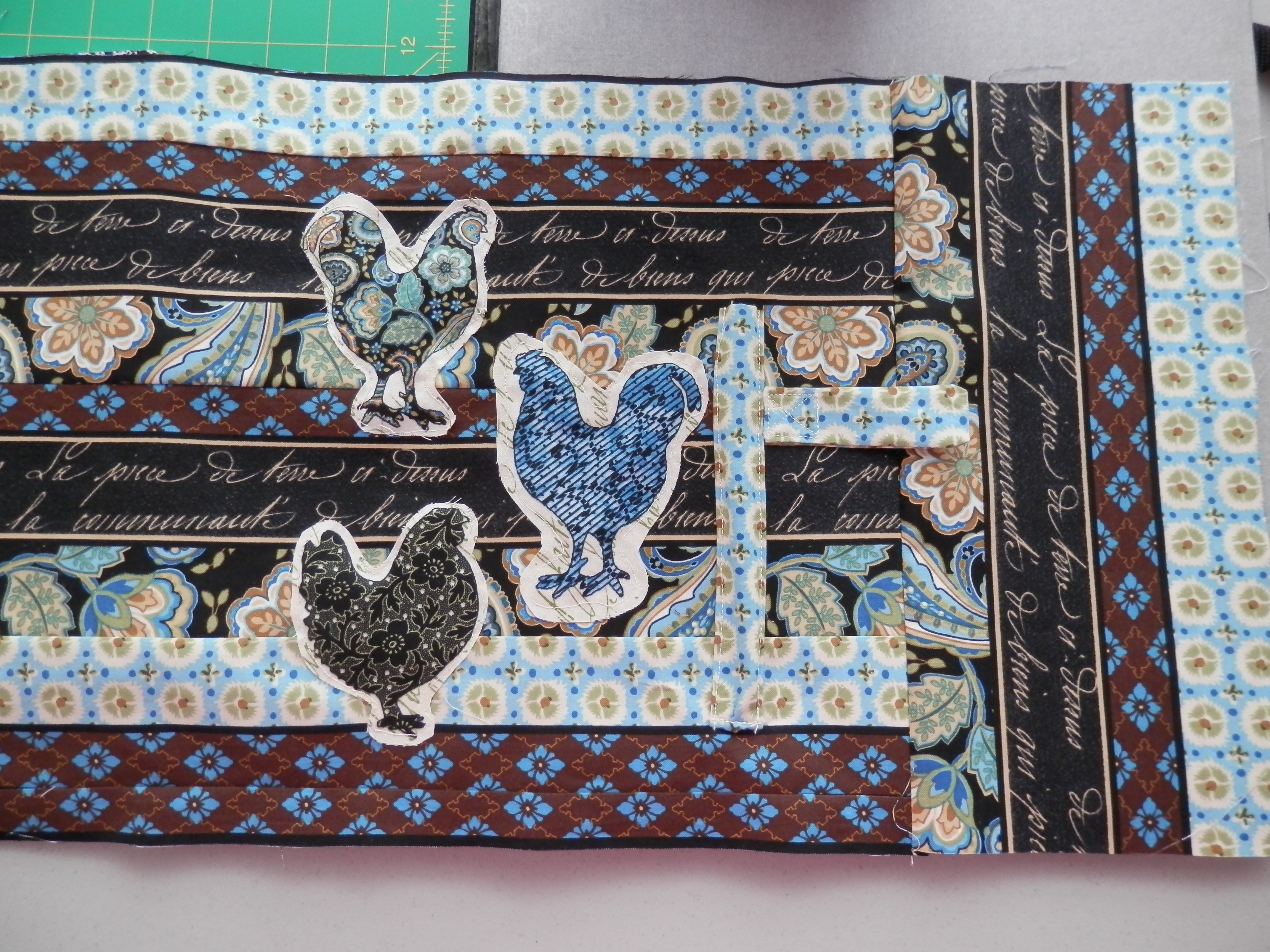 And after machine appliqueing the chickens, I added a closure strip (also my invention) that I would later finish off with Velcro: