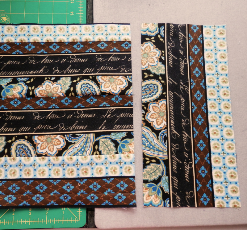 Then I re-assembled the other printed strips in a different arrangement in roughly the width of fabric needed for a journal cover: