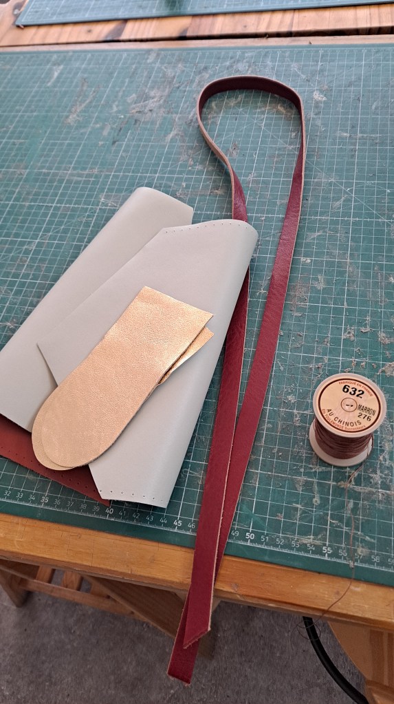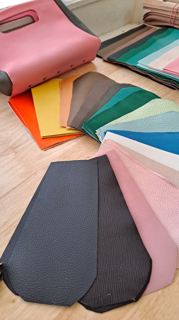 But we were not done yet. We had to chose a leather color for the other bag components for mom, that meant the oval side panels and the little leather reinforcement swatches that go behind the closures. For me, it meant the interior base of the bag and leather swatches. The final choices were the thread color and leather strap.