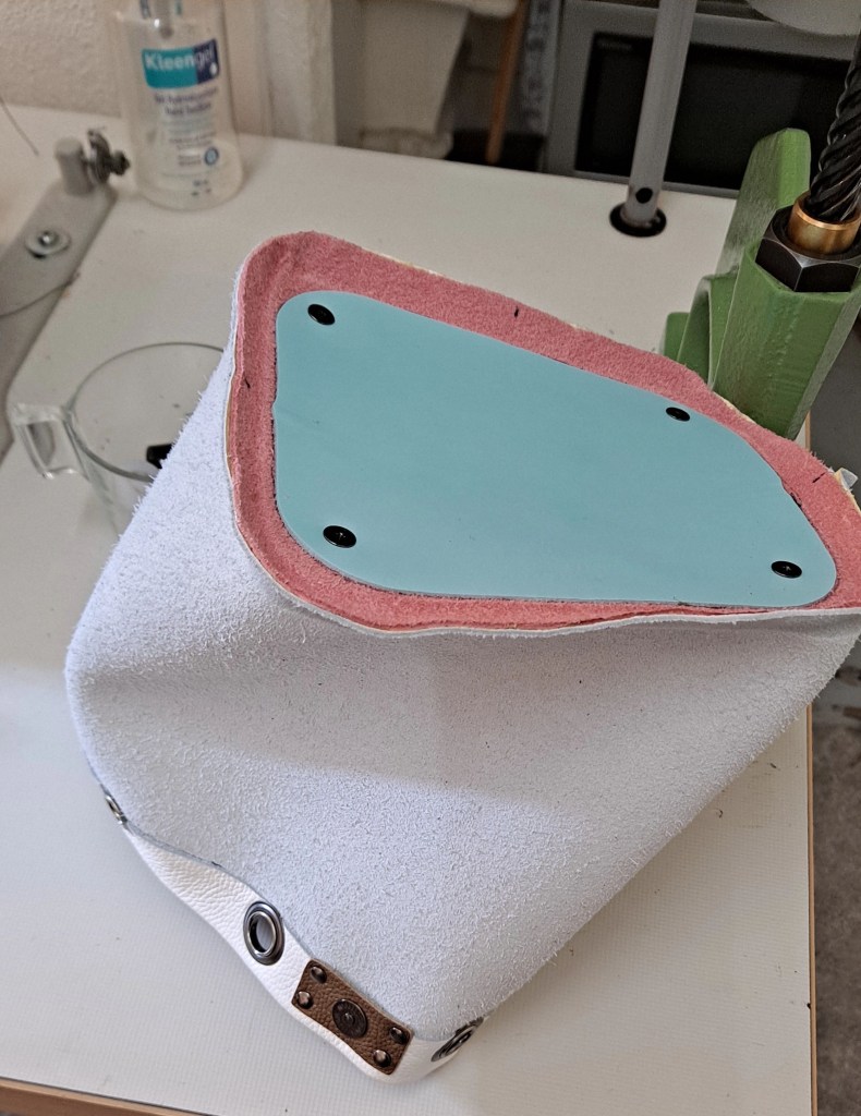 While I did hand stitch the side of my bag myself, Ines stepped in and stitched the bottom to the sides on this cool industrial sewing machine. I will confess that I was DYING to take a turn using it. I am such a sewing machine geek…