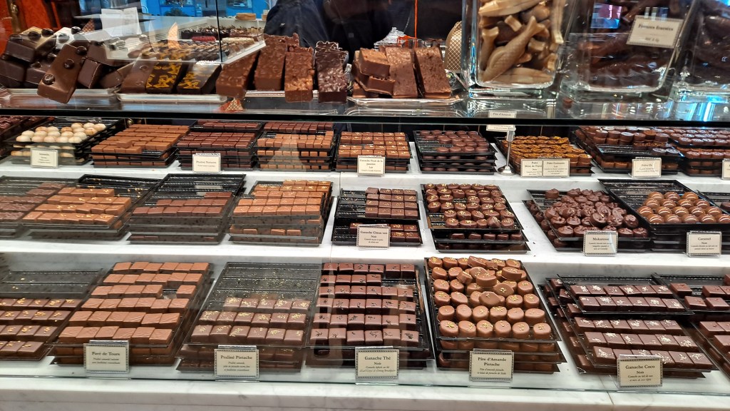 The shop also had a full case of handmade chocolates — truffles, nougats, cream and fruit filled, as well as a gorgeous pastry case.