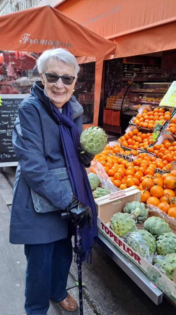 Next, it was a stop at the greengrocer, where mom HAD to have one of these enormous artichokes.