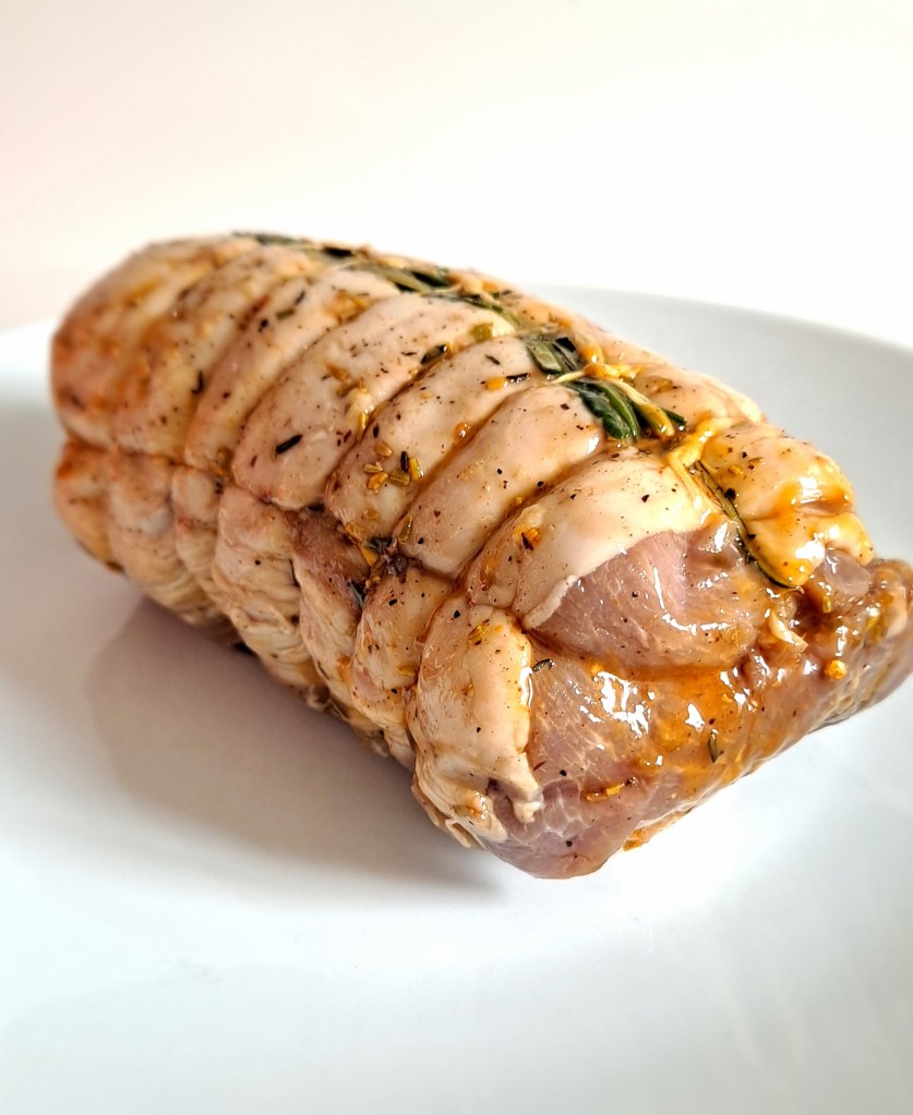 Next, we headed to the butcher shop where we scored this cute little lamb loin roast. The butcher spoke no English, but my “kitchen French” came in handy in that conversation as we debated a roast versus lamb chops and whether or not we wanted a marinated loin.